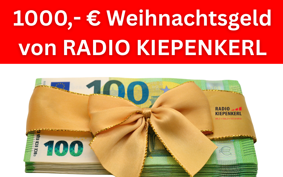 Stell dir vor: Du schlenderst durch die überfüllte Innenstadt, überall riecht’s nach gebrannten Mandeln, und du denkst dir nur: „Jo, schön hier… aber warum kostet alles plötzlich so viel wie ’ne mittelgroße Eigentumswohnung?“. Genau da kommt Radio Kiepenkerl ins Spiel: Wir übernehmen mal den Stress – und du übernimmst das Shoppen. Denn wir verschenken: 1.000 Euro Weihnachtsgeld. Einfach so. Ohne Quittung. Ohne Stress.