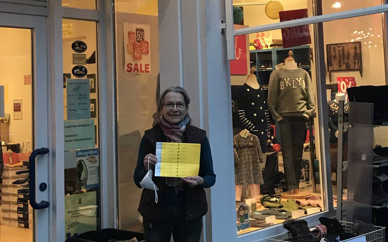 Beim Shoppen den Impfnachweis und den Personalausweis parat haben – ist ganz schön aufwändig. Gelbe Armbändchen sollen in Aschenberg und Herbern Zeit sparen.