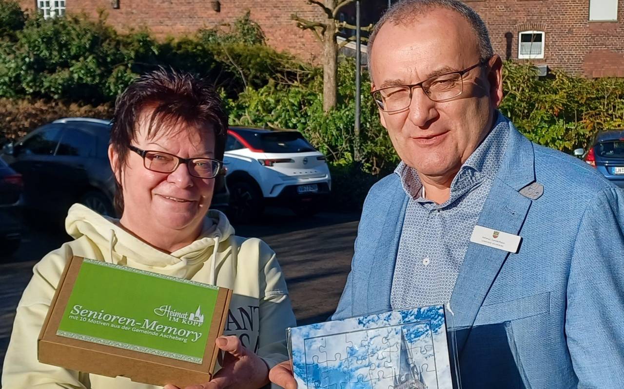 Es handelt sich um ein Puzzle mit großen Teilen und ein Memory-Spiel mit nur 10 Karten. Darauf sind Motive aus der Gemeinde, zum Beispiel der Kirche in Ascheberg oder dem Burgturm in Davensberg. Dinge, die die Menschen lange kennen und sich deshalb leichter erinnern. Die Gemeinde stellt die Spiele Mitte März auf den Ascheberger Gesundheitstagen unter der Überschrift "Heimat im Kopf" offiziell vor. Danach sind sie bei Ascheberg Marketing erhältlich.