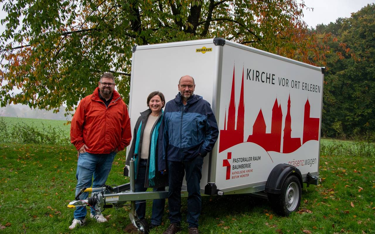 Im Pastoralen Raum Baumberge haben die Pfarreien in Billerbeck und den Gemeinden Rosendahl, Havixbeck und Nottuln jetzt neu einen Präsenzwagen im Einsatz. Unter dem Motto „Die Menschen sind nicht weg, sie sind nur woanders“ möchte das Team Kirche dort erfahrbar machen, wo Menschen leben, arbeiten und sich begegnen. Das können Gottesdienste auf dem Marktplatz, spirituelle Impulse im Park oder Workshops unter freiem Himmel sein.