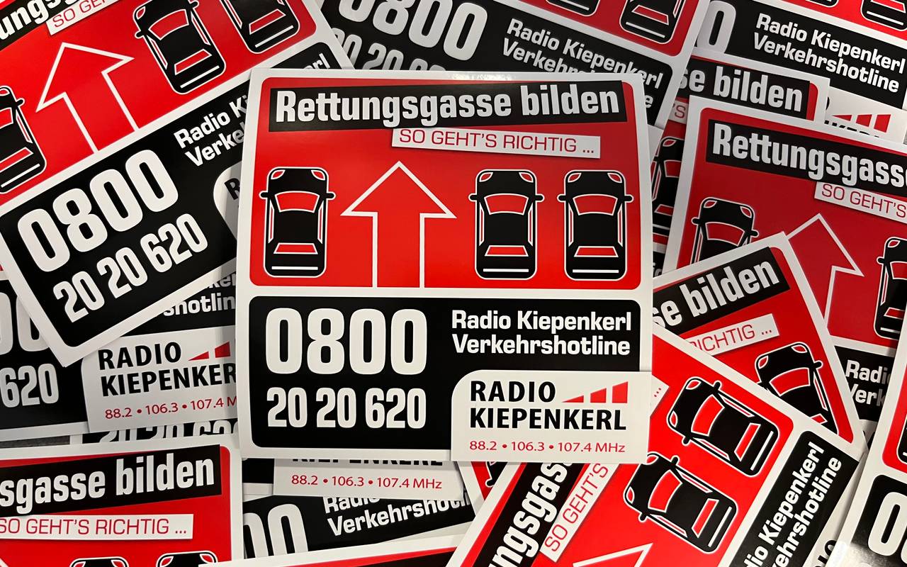 Den Radio Kiepenkerl RETTUNGSGASSEN-AUFKLEBER gibt es bei uns im Radio Kiepenkerl Medienzentrum Dülmen, Königswall 6, Dülmen.