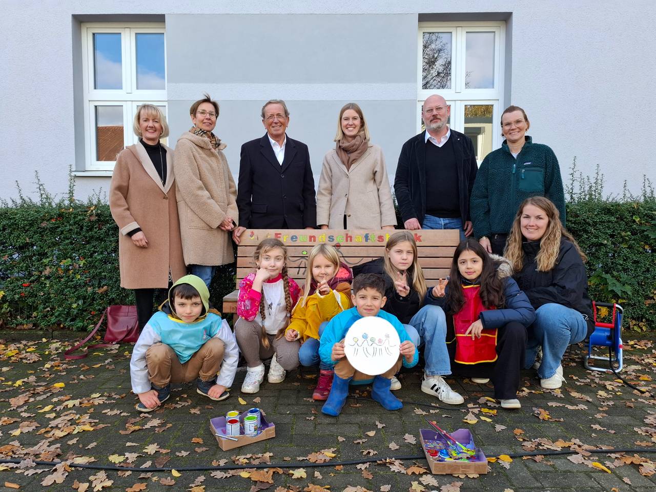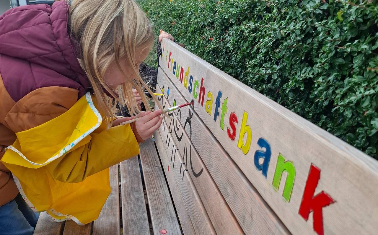 Ins Leben gerufen hatte die Aktion Heinrich-Georg Krumme, langjähriger, ehemaliger Vorstandsvorsitzende der Sparkasse Westmünsterland: Die Bürgerstiftung Coesfeld stellt den Grundschulen und Kindergärten robuste Bänke zur Verfügung, die Kinder bemalen sie selbst bunt. Die Bänke sollen dann Treffpunkte sein: wer auf einer solchen Bank Platz nimmt, zeigt er möchte reden und braucht ein offenes Ohr. Die Resonanz auf die Idee war super - über 31.400 Euro an Spenden sind dafür zusammengekommen - über 40 Freundschaftsbänke konnten so Realität werden. Tischlergesellen im Kreis Coesfeld fertigten die Bänke für die Schulen und Kindergärten in Coesfeld und Lette während ihrer Ausbildung. Der städtische Bauhof stellte sie schließlich auf.
