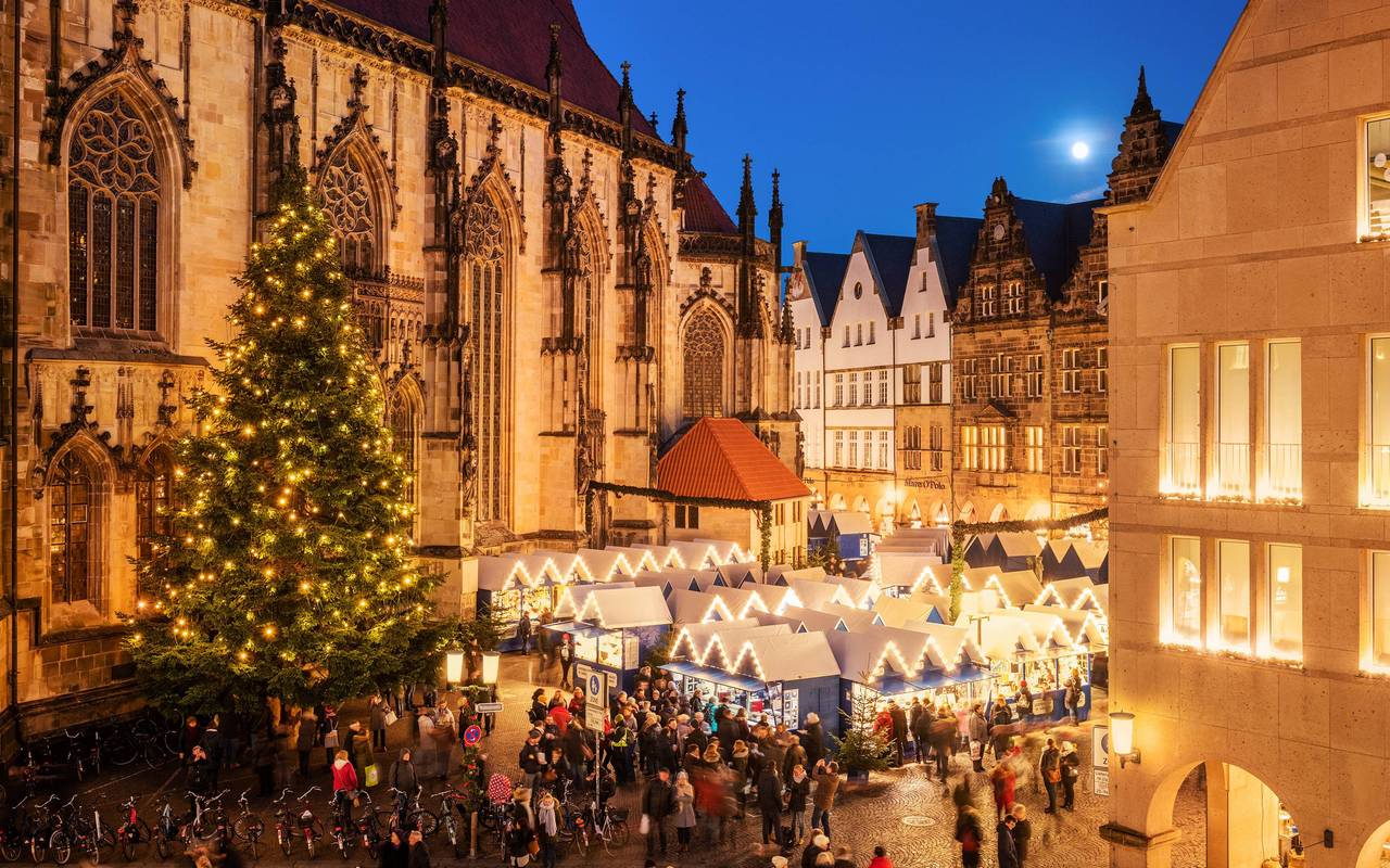 Münster-Vielfalt - 300 Buden verteilt auf insgesamt sechs Märkte verwandeln die Innenstadt Münsters in ein zauberhaftes Meer aus Lichtern und herzhaften und süßen Düften. Da steht einem gemütlichen Weihnachtsbummel nach Einbruch der Dunkelheit nichts mehr entgegen. Umgeben von typischen Münster Fachwerkhäusern verteilen sich die Aussteller vom Rathaus über die Liebfrauen-Überwasserkirche bis hin zum X-MS Weihnachtsmarkt am Harsewinkelplatz. Am Lamberti-Markt kann man übrigens Münsters größte funkelnde Tanne bestaunen. Dort ist auch alles lokal und regional. Alle Märkte in Münster öffnen ihre Türen ab dem 24. November.