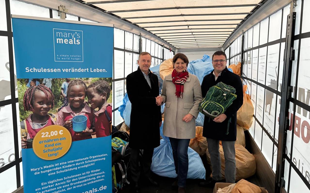 Schüler unter anderem aus Coesfeld, Dülmen, Senden und Nottuln haben Schultaschen mit allem gefüllt, was für den Schulalltag nötig ist. Es ist eine Aktion der Wohltätigkeitsorganisation Marys Meals. Heute Morgen beginnen Schüler des Clemens Brentano Gymnasiums damit, den Container zu beladen. Die Nottulnerin Ingrid Schürmann von Mary's Meals freut sich über dieses Engagement. Der Container wird nach Bremerhaven gebracht, dort auf ein Schiff geladen und dann geht es nach Afrika. Malawi ist das Ziel: Von dort aus verteilt die Organisation die Schultaschen an die Kinder.