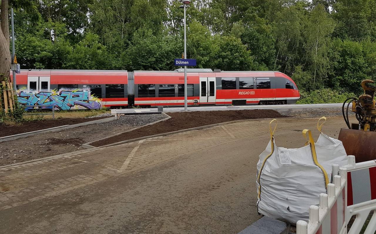 Damit Sie einfacher in Züge ein- und aussteigen, ist der Bahnsteig an Gleis 31 in Dülmen schon seit einem Monat angehoben. Aktuell laufen nur noch Restarbeiten drum herum - die Bahn rechnet damit, Ende August mit diesen Restarbeiten fertig zu werden.