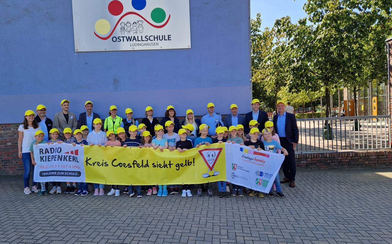 Es ist wieder voll morgens auf den Straßen im Kreis Coesfeld. Und gerade wegen der ganz kleinen neuen Verkehrsteilnehmer, den Erstklässlern, müssen Autofahrer ganz besonders aufpassen. Radio Kiepenkerl verteilt deshalb zusammen mit Ernsting's Family leuchtend gelbe Käppis an alle Schulanfänger im Kreis Coesfeld. Den Auftakt hat die Ostwall-Grundschule in Lüdinghausen gemacht.