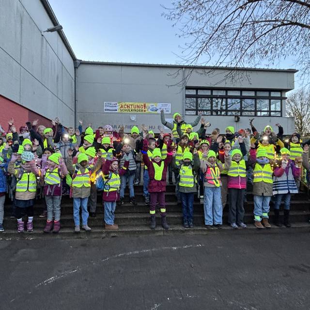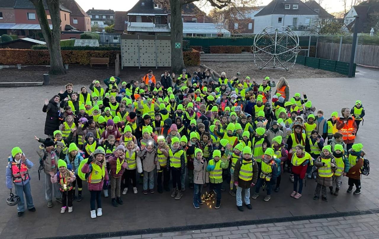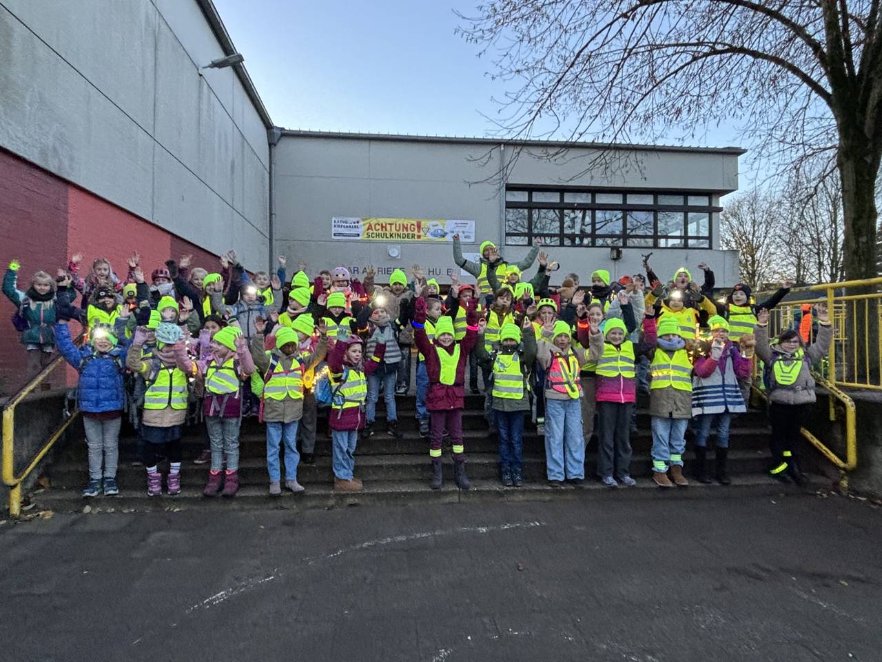 Alle heile angekommen, hoffen wir! Heute Morgen waren Grundschüler in Coesfeld auf dem Weg zur Schule besonders gut zu sehen. Heute ist nämlich Glühwürmchentag in Coesfeld. In anderen Städten gab und gibt es diesen besonderen Tag auch. Es geht darum, dass die Grundschulkinder in der dunklen Jahreszeit möglichst gut "beleuchtet" zur Schule kommen, alle Kinderr sollen leuchten wie Glühwürmchen.