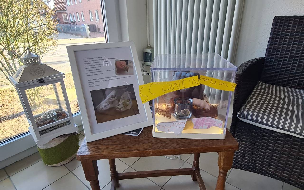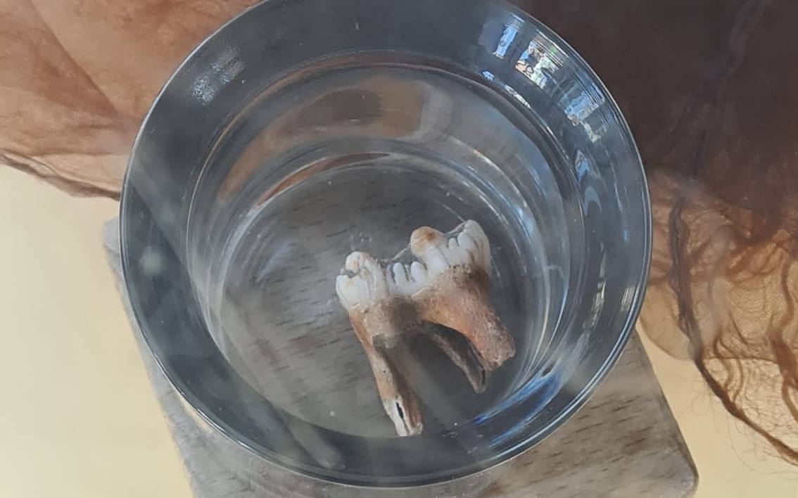 Die Jungs haben auf ihrer Kita-Baustelle im Garten gebuddelt und dabei den Zahn entdeckt. Nachdem sie ihn gewaschen und in ein Taschentuch gewickelt hatten, haben sie ihren Erzieherinnen und Leiterin Silvia Mertmann davon erzählt. Erst haben sie gemeinsam überlegt und mit Hilfe des Internets versucht herauszufinden, was das für ein Zahn ist. Dann ist die Mutter von Noa gemeinsam mit Noa und Emil zur offenen Sprechstunde im Geomuseum der Uni in Münster gefahren und hat dort den Fund gezeigt. Erst hier stellte sich heraus: der Wildschweinzahn ist richtig alt. Die Kinder sind super stolz und der Zahn liegt jetzt gemeinsam mit Bildern und selbstgeschriebenen Texten in einer Vitrine in der Kita.