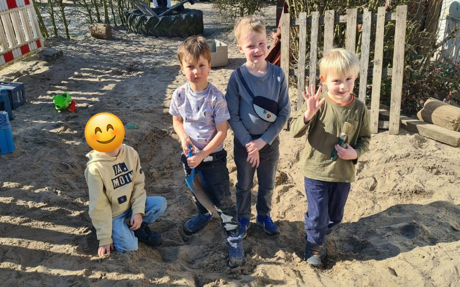 Cedric, Pepe, Emil, Noa und Lean aus der St Ida Kita in Dülmen haben beim Archäologe spielen einen bis zu 10.000 Jahre alten Wildschweinzahn gefunden.