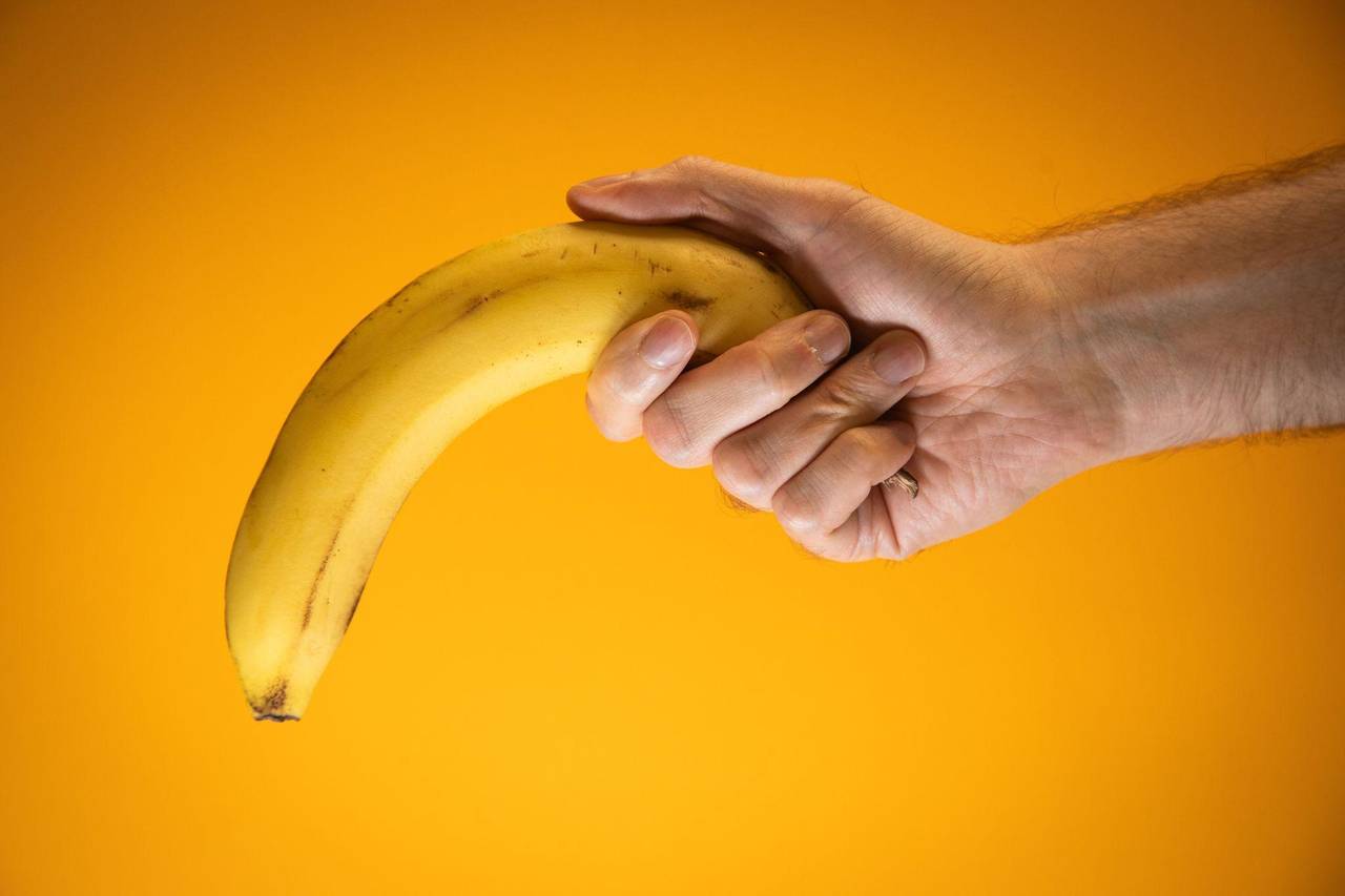 Eine Person hält eine Banane, die nach unten gerichtet ist