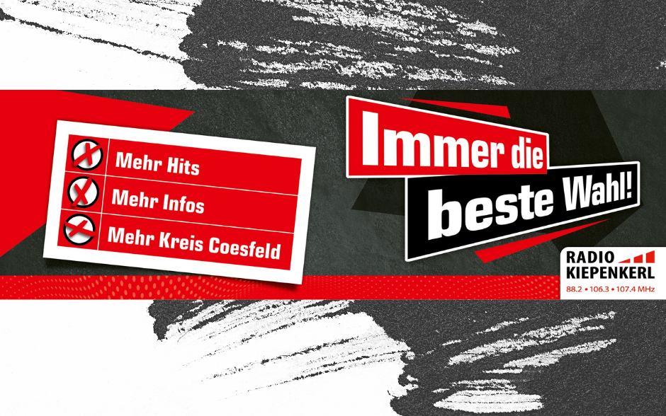 Darum geht es bei den Radio Kiepenkerl Kandidatengesprächen zu den Kommunalwahlen im Kreis Coesfeld. Wir bohren so lang nach, bis die Bürgermeister- und Landratskandidaten sagen, was Sache ist. Und: Ihr gebt die Fragen vor. Schreibt uns, was ihr von den Kandidaten wissen möchtet. Die Antworten gibt es ab Montag, 1.9.2025, täglich um 18 Uhr in den Radio Kiepenkerl Kandidatengesprächen. Radio an!