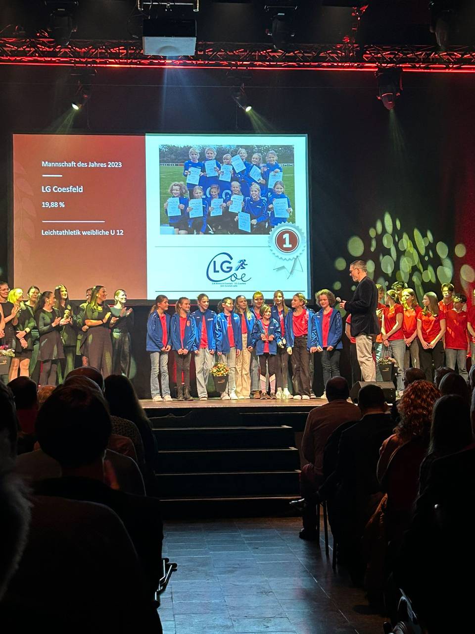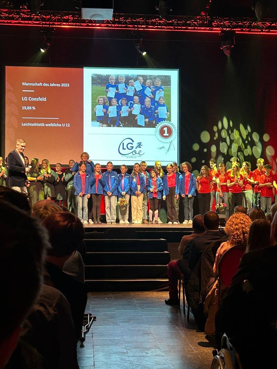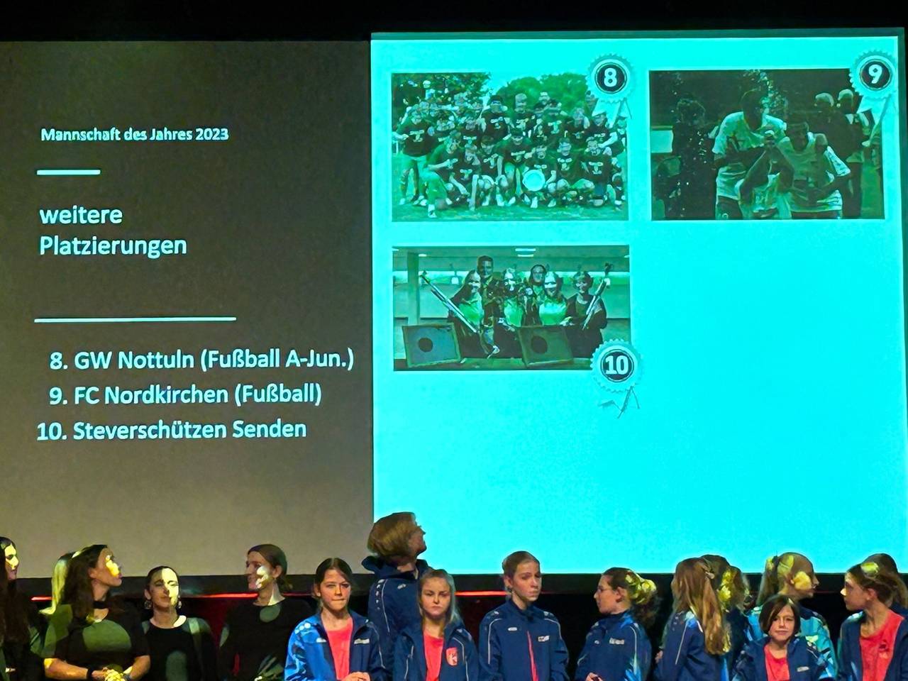 Mannschaft des Jahres: 1. Platz - LG Coesfeld U12 Mädchen (Leichtathletik), 2. Platz - Black Jewels (Tanzen), 3. Platz - Union Lüdinghausen U15 (Badminton)