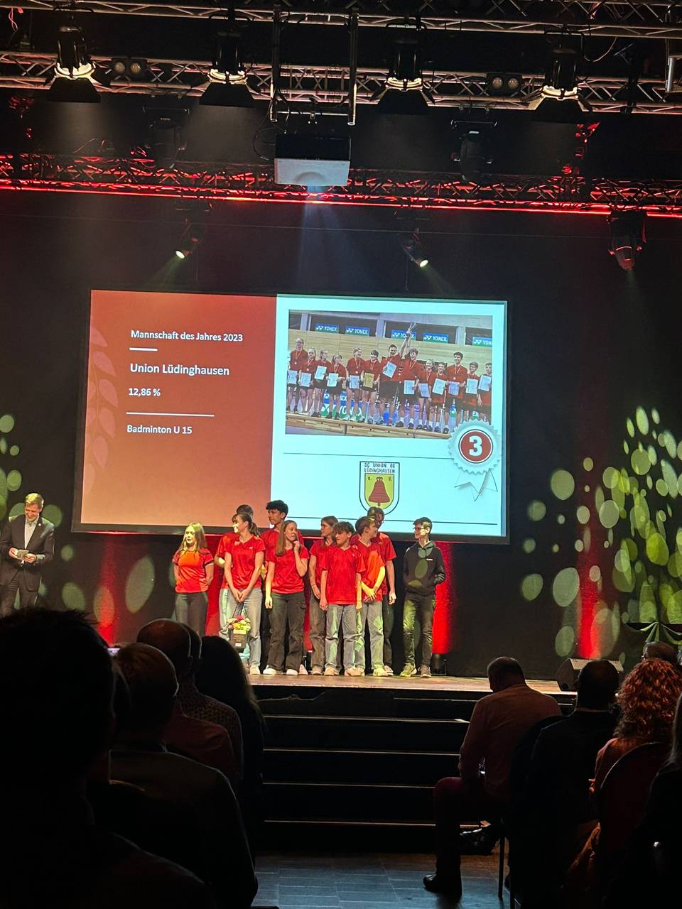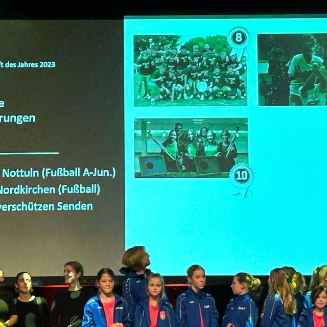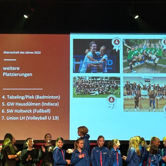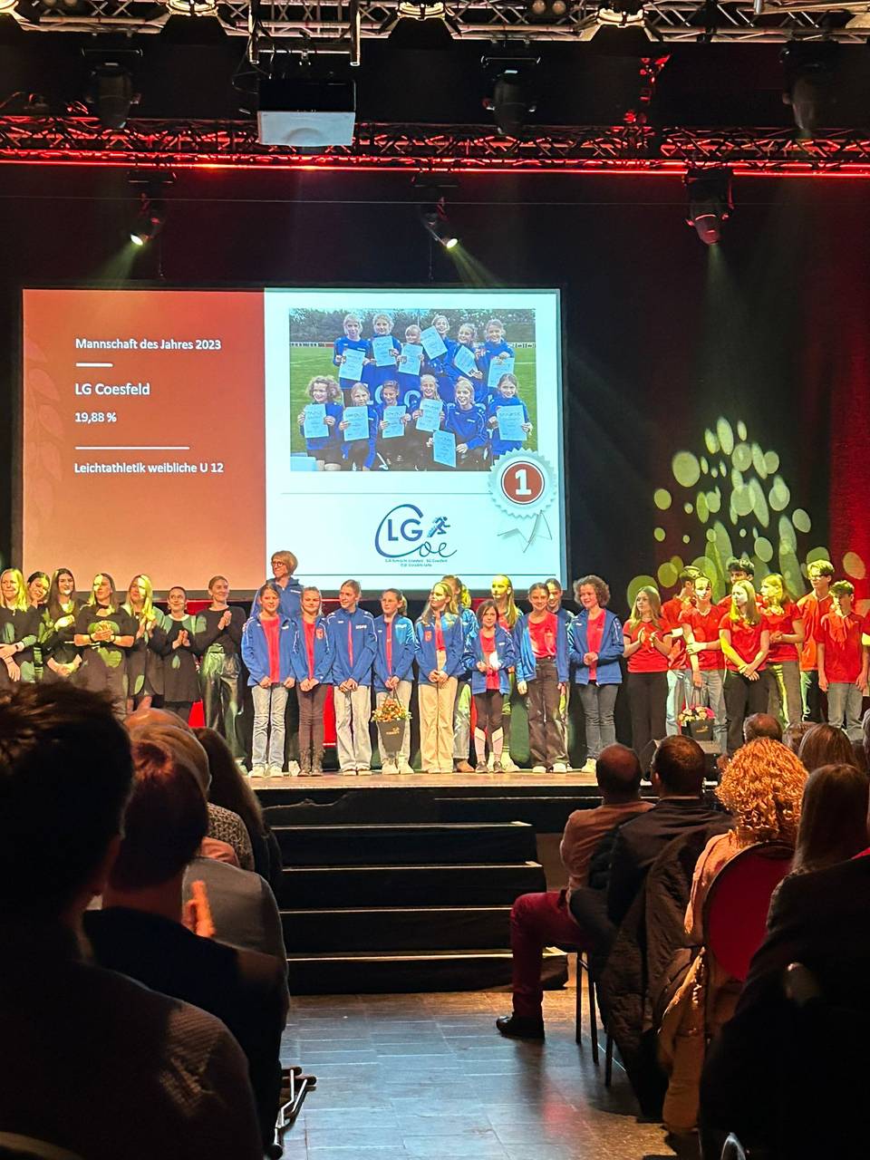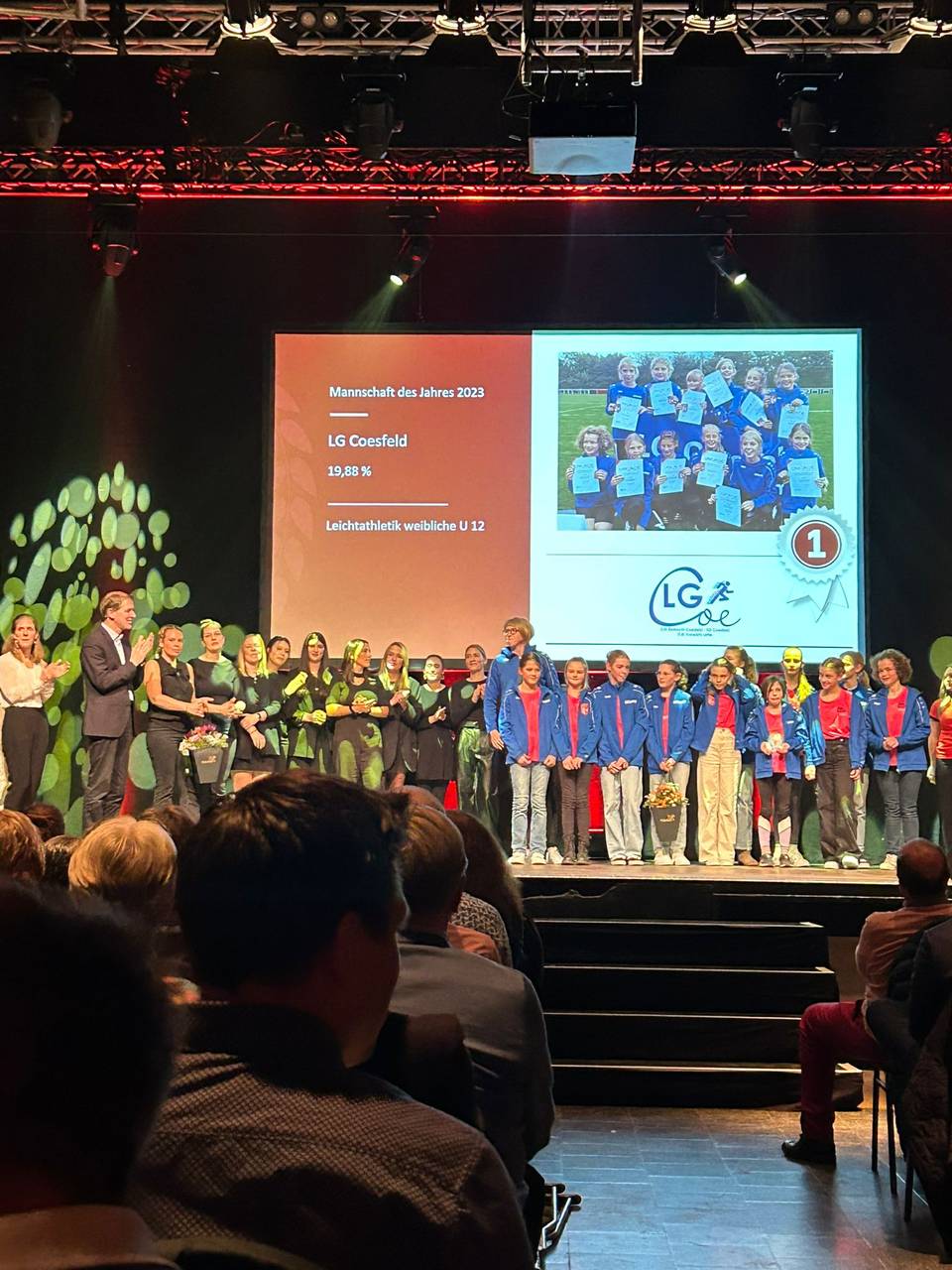 Mannschaft des Jahres: 1. Platz - LG Coesfeld U12 Mädchen (Leichtathletik), 2. Platz - Black Jewels (Tanzen), 3. Platz - Union Lüdinghausen U15 (Badminton)