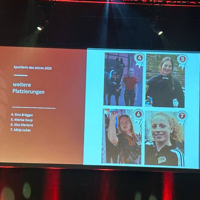 Sportlerin des Jahres: 1. Platz - Pia Meßing aus Lette (Leichtathletik), 2. Platz - Jule Hake aus Olfen (Kanu), 3. Platz - Cinja Tillmann aus Senden (Beachvolleyball)