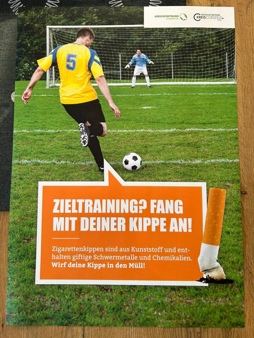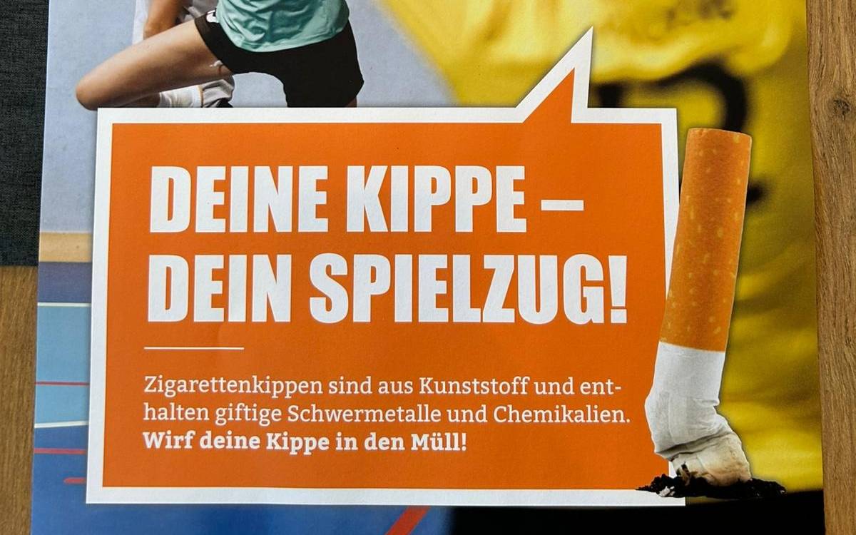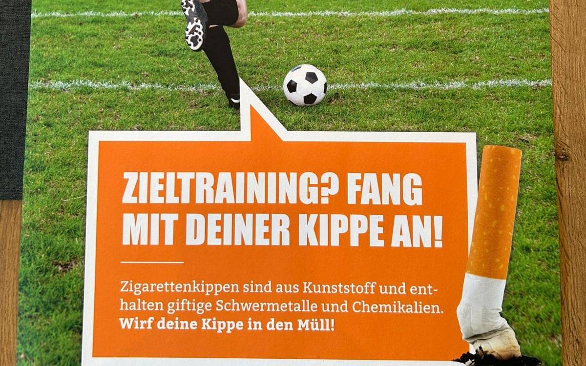 Heute haben die Wirtschaftsbetriebe des Kreises ihre Anti-Kippen-Kampagne gestartet. Plakate erinnern an Sportplätzen daran, Kippen nicht einfach auf den Boden zu schmeißen.