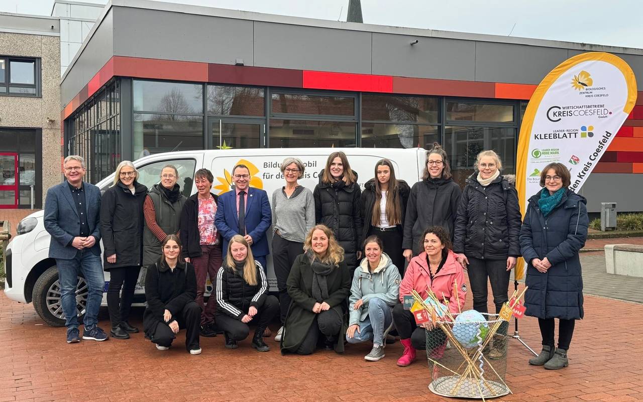 Dadurch, dass der Elektro-Transporter Schulen und Kindergärten im Kreisgebiet direkt anfährt, kann das Biologische Zentrum im gesamten Kreis Coesfeld das ganze Jahr über eine mobile, generationenübergreifende Umweltbildung durchführen - und nicht nur Angebote an seinem Standort in Lüdinghausen bieten. In dem Bildungsmobil sind verschiedene Materialien, die zu verschiedenen Umweltthemen informieren - beispielsweise zur nachhaltigen Abfallentsorgung, aber auch zu einer ressourcenschonenden Ernährung. Interessierte Schulen und Kindergärten buchen einen Besuch des neuen Umweltmobils direkt beim Biologischen Zentrum des Kreises.