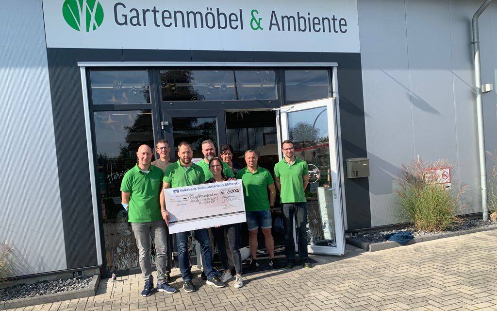 Gartenmöbel und Ambiente Lüdinghausen spendet 5.000€ an die Aktion Lichtblicke Unwetter-Hilfe.