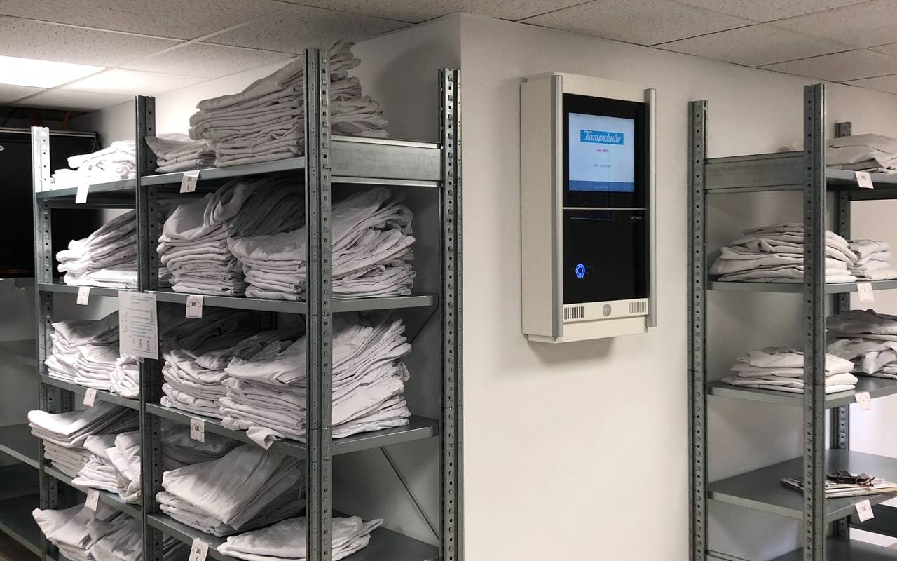 Es handelt sich um eine Art Raum, in den die Mitarbeiter mit ihrem Zugang reinkommen und sich mit frischen Kitteln Hosen und Shirts ausstatten. Hier geben Sie auch ihre gebrauchte Arbeitskleidung ab. Durch den Automaten stehen jederzeit ausreichend Größen und Sets zur Verfügung und das unabhängig von Uhrzeit oder Schichtdienst. Zudem sei dadurch ein besserer Überblick bei Ausgabe und Rückgabe der Kleidung möglich.