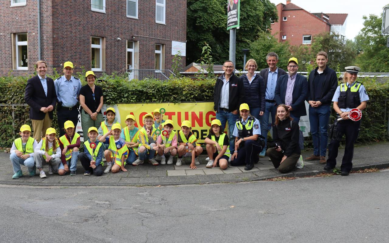 In den kommenden Wochen werden Verkehrsteilnehmende im Kreis Coesfeld immer wieder gelb sehen. Auf Plakaten, auf Bannern und auch auf Kinderköpfen, denn zu Schuljahresbeginn erhielten alle Schülerinnen und Schüler der ersten Klassen im Kreis ihre auffällig gelben Käppis. Mit der Verkehrssicherheitskampagne wollen wir gemeinsam mit Sponsor Ernsting’s family Kinder im Straßenbild sichtbarer machen. So sollen Verkehrsteilnehmer dafür sensibilisiert werden, dass nach dem Ende der Ferien die Kinder wieder auf dem Schulweg sind. Begleitet wird die Aktion mit vielen Bannern und Plakaten sowie Radiospots.