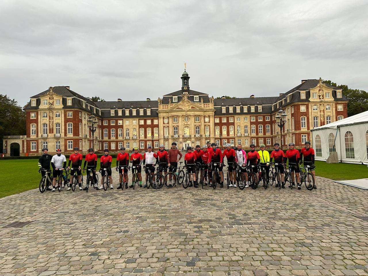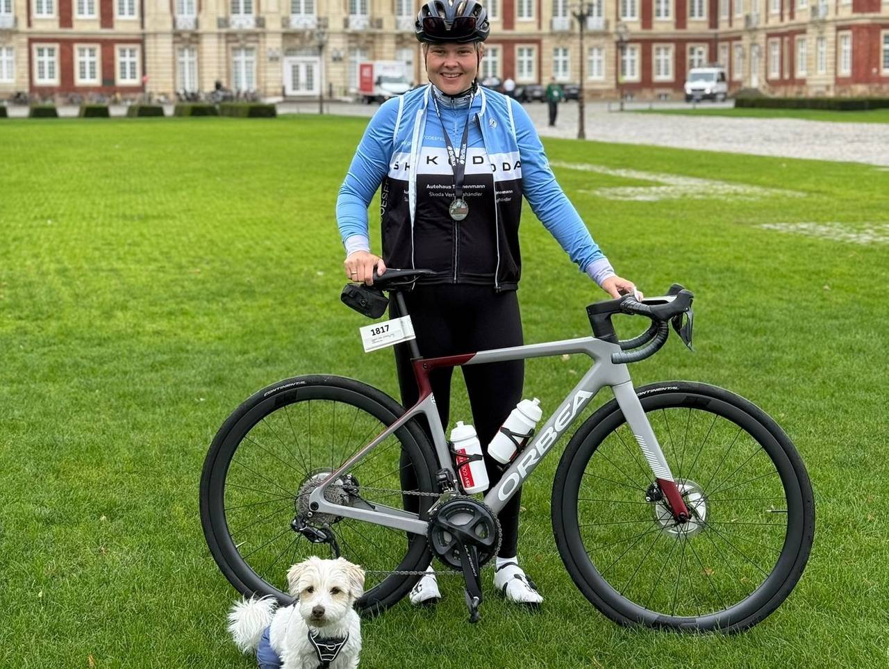 Unter anderem 23 Radsportler von Borussia Darup sind am Tag der deutschen Einheit mit dem Fahrrad durch das Münsterland gefahren. Und Daniela Parthe vom Radsportverein Coesfeld erinnert sich heute Morgen sicherlich noch gerne an einen besonderen Moment. Ihr kleiner Hund oder wie sie sagt, ihr Wollkneul, hat sie im Ziel am Schloss in Monster begrüßt.