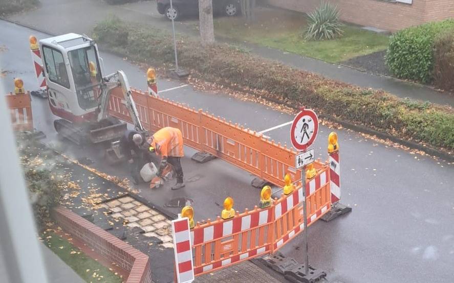 Das sind gute Nachrichten aus Nottuln - jetzt ist es doch schneller gegangen als zuletzt gedacht. Anders als erwartet hat eine Firma in der Steinstraße doch schon damit begonnen einen abgesackten Bereich des Gehwegs und der Straße zu öffnen. Die Steinstraße ist für die Arbeiten in dem Bereich einseitig gesperrt.