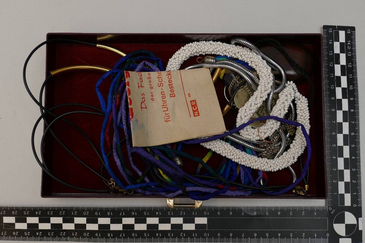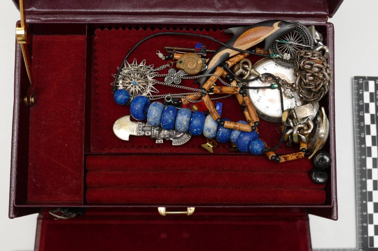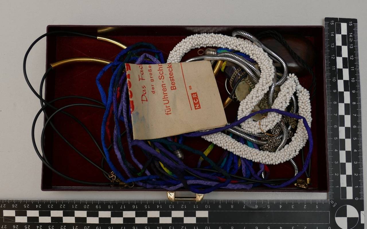 Eine Nottulnerin fand am 13.12. ein rotes Schmuckkästchen aus Leder mit Modeschmuck in einem Waldstück an der Straße Am Vogelbusch und übergab dieses an die Polizei. Am 17.12. fand eine andere Nottulnerin im Straßengraben an der Schapdettener Straße einen dazugehörigen Schubladeneinsatz sowie weiteren Modeschmuck. Die Polizei hat die betreffenden Gegenstände sichergestellt. Aufgrund der Umstände geht sie davon aus, dass die aufgefundenen Gegenstände aus einer Straftat stammen, möglicherweise einem Einbruch. Trotz aller Bemühungen konnte die Polizei jedoch bislang keine entsprechende Straftat zuordnen und fragt in diesem Zusammenhang:
