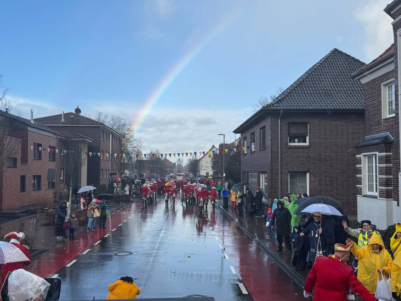 Rund 15 000 Menschen haben bis zum frühen Abend in Olfen den Karenvalsumzug verfolgt. Die Stimmung war trotz des wechselhaften Wetters bestens.