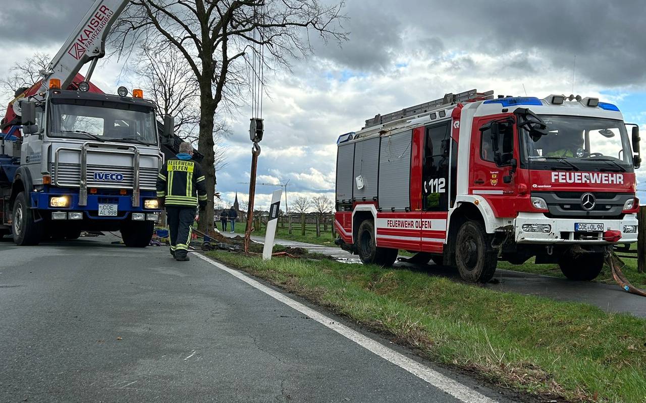 Eine Firma hatte sich das Fahrzeug nach einem Unfall Ende Februar angeschaut und ist zu diesem Ergebnis gekommen. Die zuständige Firma in Viersen ist noch weiter damit beschäftigt, alle Schäden aufzunehmen. Derzeit setzt sie den Rahmen des Fahrzeugaufbaus instand. Das dauert also alles noch. Die Firma geht davon aus, dass das Löschfahrzeug mehrere Monate ausfällt. Die Stadt hat daraufhin einen Gutachter beauftragt, zu untersuchen, ob die Feuerwehr ein Leih-Löschfahrzeug braucht. Das sieht er nicht so, die verbleibenden Fahrzeuge der Feuerwehr würden bei Einsätzen ausreichen. Für die Feuerwehr bedeutet das, sie muss gut packen. Sie hat die Ausrüstung des verunglückten Löschwagens auf zwei andere Fahrzeuge verteilt. Die Hilfe sei auf jeden Fall weiter gewährleistet. Nach einem Einsatz war das Löschfahrzeug in einen Graben gerutscht. Ein Kran war nötig, um es herauszuziehen.