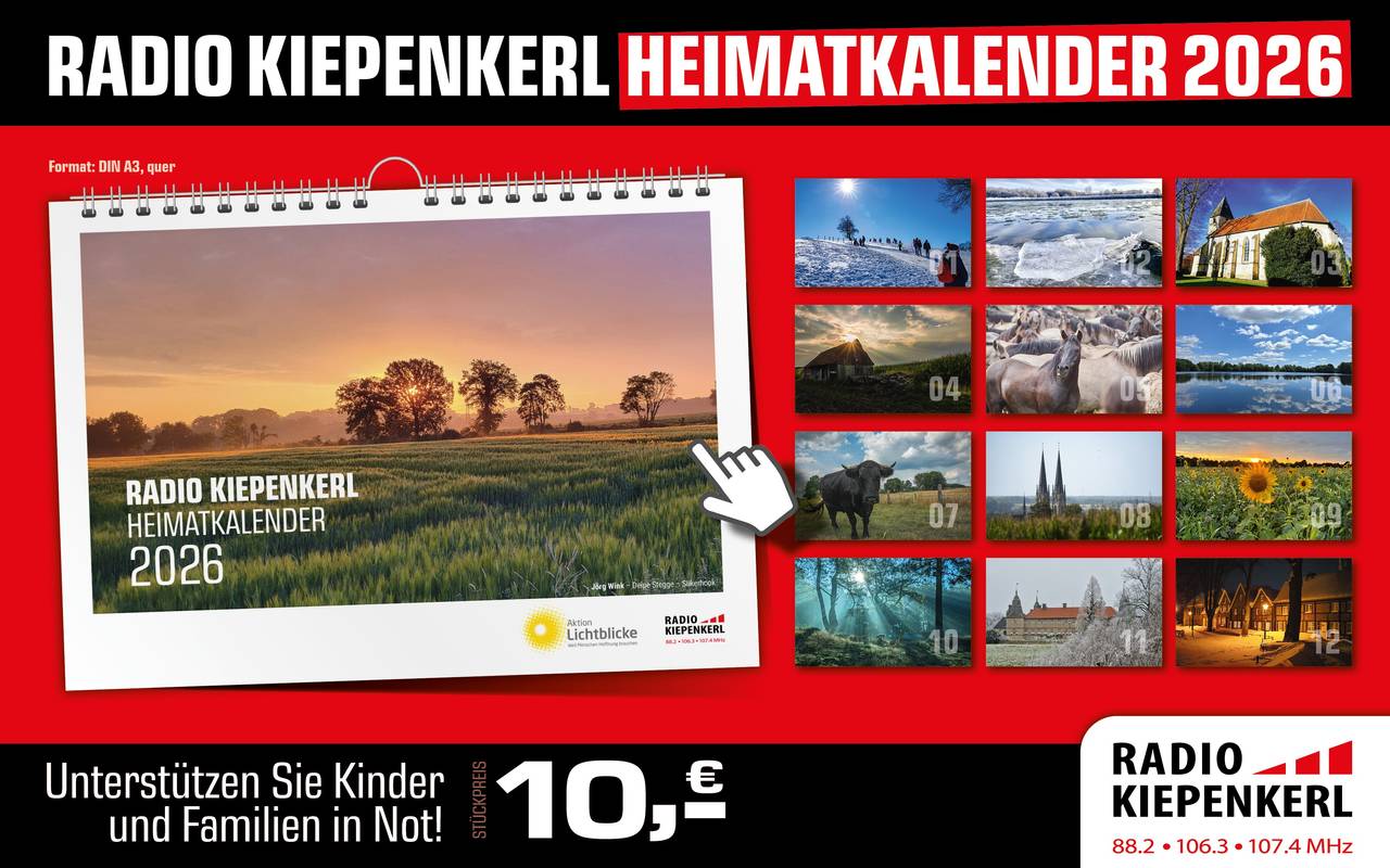 Viele tolle Fotos gibt es im Radio Kiepenkerl Heimatkalender - ein tolles Weihnachtsgeschenk. Es gibt ihn für nur 10 Euro. Davon geht ein Euro an unsere "Aktion Lichtblicke". Damit unterstützen wir in Not geratene Kinder und Familien bei uns in der Region. Freut euch auf 13 tolle Bilder aus dem Kreis Coesfeld. Alle Infos zum Heimatkalender und wo Du ihn bekommst: HIER! (Nur solange der Vorrat reicht).