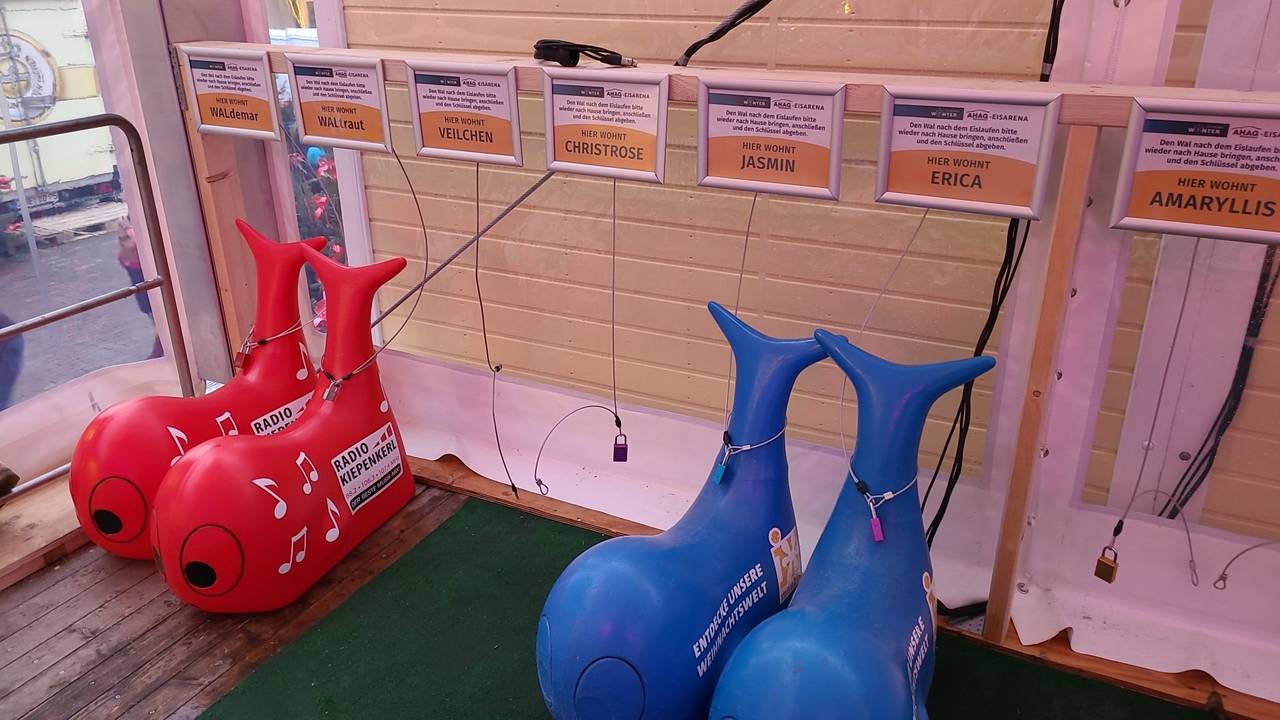 Der Dülmener Winter ist wieder mit der Eisbahn (AHAG Eisarena) gestartet. Neben den 10 blauen Walen (Eislauf-Hilfen) gibt es auch wieder die beiden roten Wale in Radio Kiepenkerl rot. Unsere Wale heißen: WALdemar & WALtraud. Viel Spaß damit auf dem Eis.